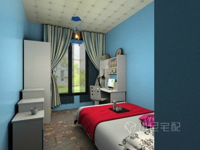 兒童房淡藍色的背景墻搭配小的工藝品點綴,盡顯活潑。