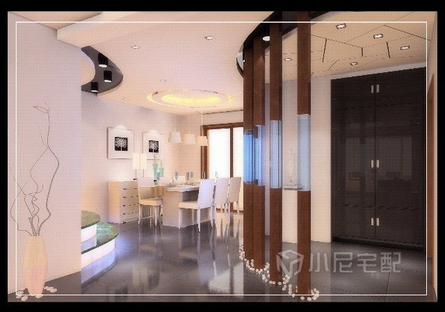 餐廳 走廊吊頂都用曲線來裝飾,臺階和吊頂形成照應(yīng)
