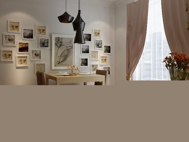 簡單的餐桌,墻壁的藝術(shù)掛畫,安靜、舒適