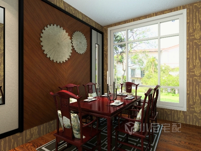 紅色的餐桌餐椅,體現(xiàn)出中國風韻搭配餐廳背景墻,更富有中式韻味。