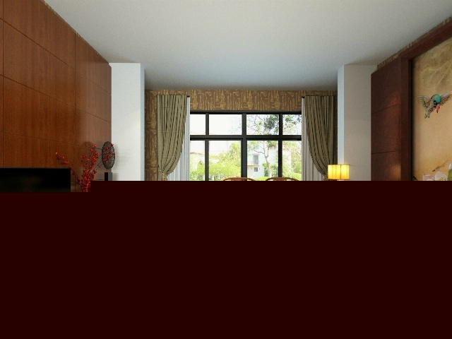 中式的背景墻搭配中國的山水畫,使東方風韻更濃;陽臺上的沙發(fā)合理的利用空間。