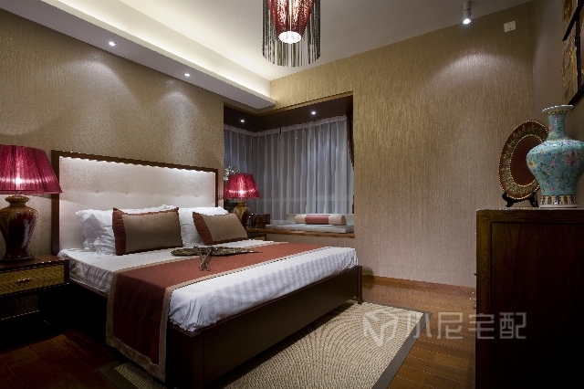 設(shè)計(jì)師充分運(yùn)用了對(duì)比與融合的構(gòu)成手法,將東南亞的色彩感覺和中式古典家具飾物結(jié)合起來,使得整個(gè)室內(nèi)空間充滿了混搭的特殊質(zhì)感和自然溫暖的情調(diào)。在空間的每個(gè)角落都融合了中式、東南亞情調(diào)及裝飾藝術(shù)的設(shè)計(jì)語言,既保存著現(xiàn)代古典的風(fēng)雅氣韻和東南亞的浪漫風(fēng)格,又在古典及優(yōu)雅的空間中顯得格外有親和力。家裝家具一體價(jià):22萬。