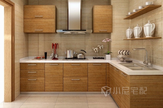 廚房:廚房同樣用木紋里門板簡單大氣,又不失時尚,呼應(yīng)主題。