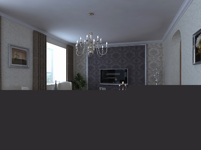 沙發(fā)背景墻后面有手繪畫(huà)出歐式的建筑元素,這是我至今看到的最省錢的歐式裝修了。