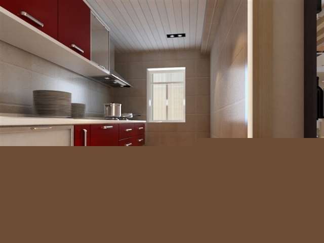 烤漆玻璃做的紅色櫥柜,既美觀又實用。