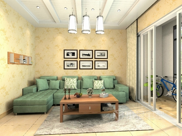 轉(zhuǎn)角沙發(fā) ,讓客廳顯得飽滿大氣, 顏色搭配得也恰到好處。