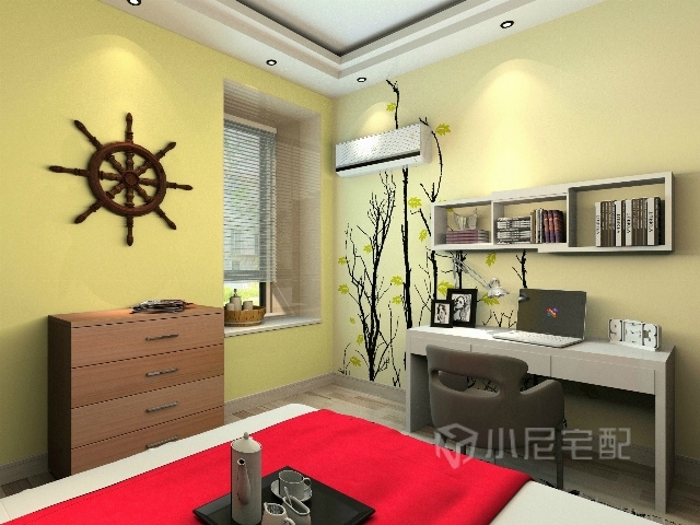 臥室的布床很舒服, 臥室的背景色是大面積的暖黃