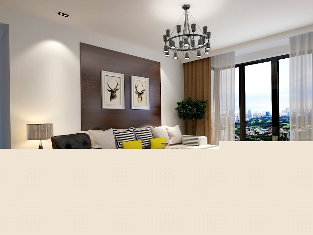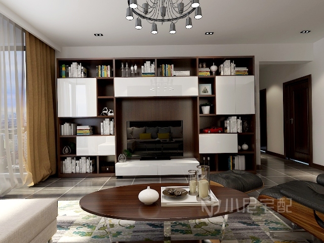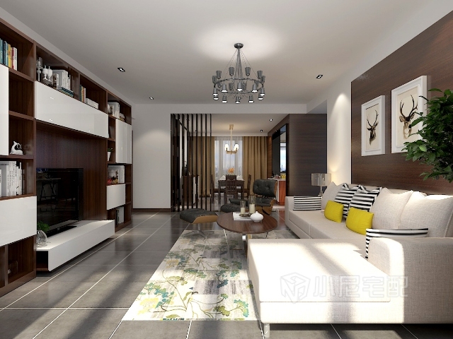 電視背景墻與沙發(fā)背景墻,沙發(fā)與地面的色調(diào)融于一體,使整個居室更有畫面感
