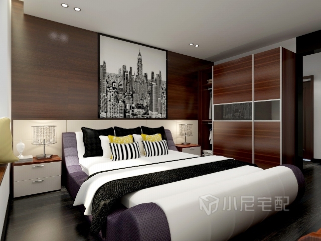 主臥室利用淡淡的家具布局把原有的空間凈化,把氣質(zhì)和品位含蓄的表現(xiàn)出來