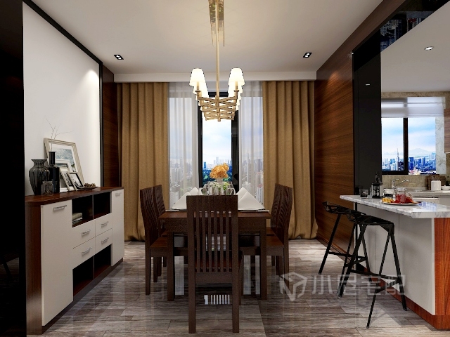 餐廳干凈簡明,餐邊柜的設(shè)計增加了收納功能
