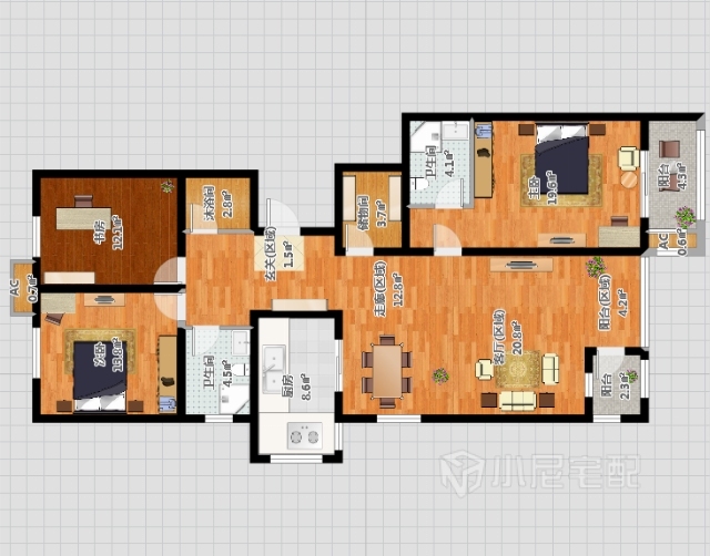 鋪設(shè)淺色木地板,選用個(gè)深色家具穩(wěn)定空間。