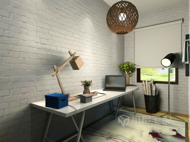 仿磚壁紙,拉絲吊燈,一個專業(yè)的工作空間誕生。