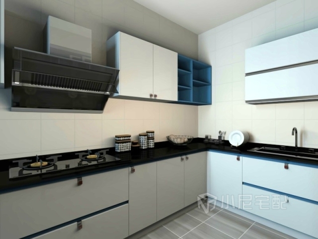 黑色的抽油煙機(jī),搭配黑色的灶臺,臺面,一體感一涌而出。配上白色的柜體,時尚感十足。