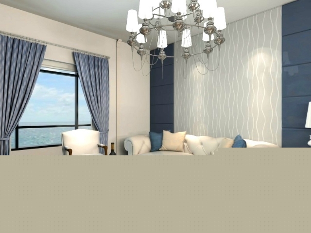 大窗讓客廳格外亮堂,藍(lán)色與白色的搭配令人心曠神怡。