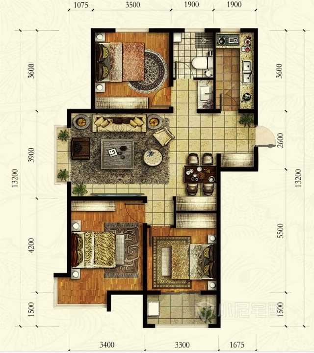 紋理清晰的木質(zhì)地板,散發(fā)出大自然氣息。
