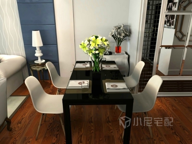 玻璃餐桌搭配木質(zhì)的支架,極具特色。