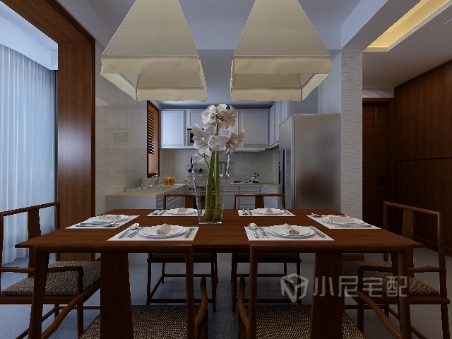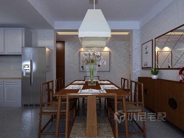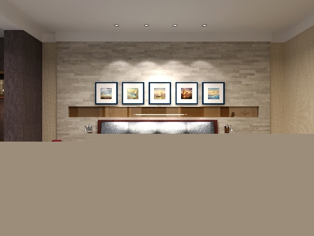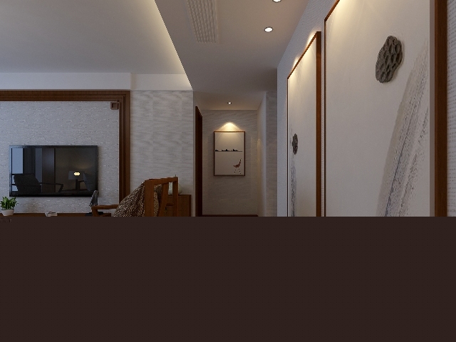 窄框的茶鏡增加了立體感,木地板墻飾體現(xiàn)人對木質的自然舒適。