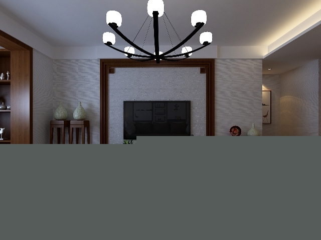 木框的電視墻與木個的電視柜,還有木色的邊幾,張顯了電視墻的高檔。