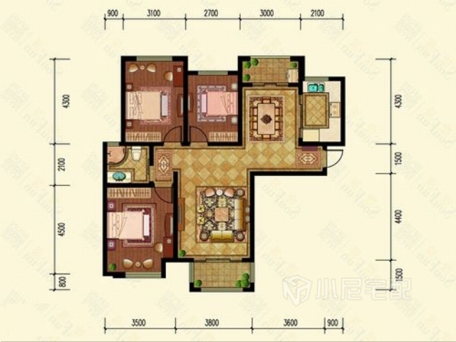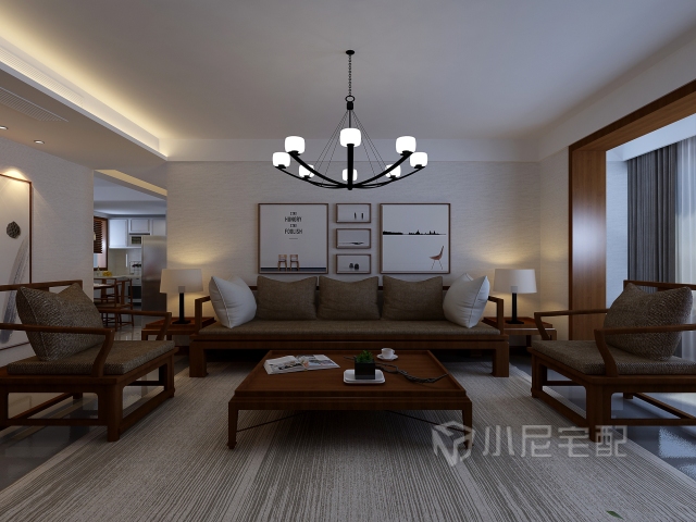 木制沙發(fā)和掛畫顯出客廳的內涵
