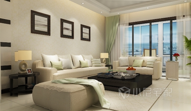 大大的落地窗給人一種通透感,寬敞明亮的客廳,室內(nèi)簡潔清新的裝飾,窗外風(fēng)景如畫,愜意而美好。
