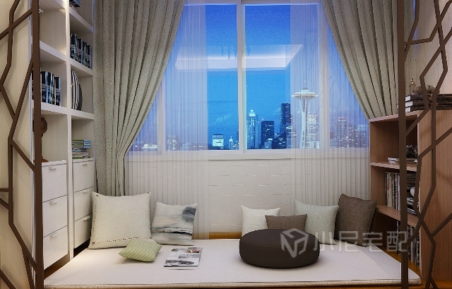 在臥室里隔出另一個(gè)小天地,坐著,躺著,趴著,怎么舒服怎么來,沉浸的書的海洋,愛讀書,愛生活。