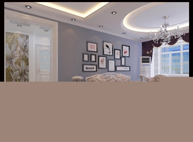 客廳吊頂以圓形為基準,采用歐式線條顯示其美感