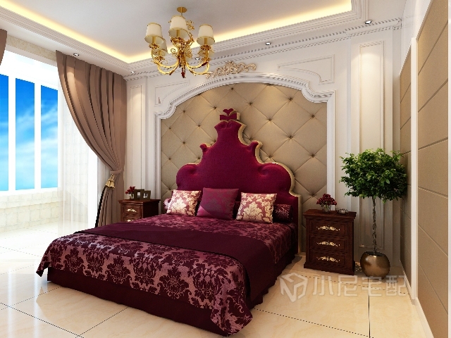 主臥主體顏色是紅色配金色,大氣而溫暖,雍容而華貴。
