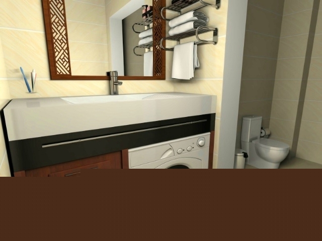衛(wèi)生間:做干濕分離,在此處應(yīng)有門(渲染要求去掉了)將洗衣機(jī)與臺盆做在一處,既節(jié)約了空間又使整個空間不會呆板賦予狹小空間的色彩多變。