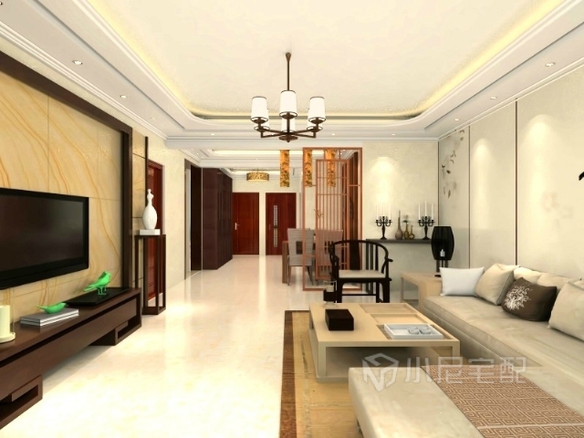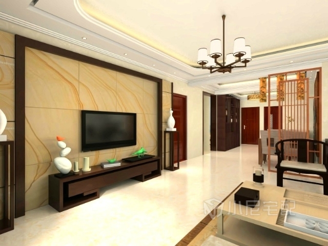 電視墻:作為家庭裝修的重點(diǎn),此地主人會客的重要場所,以并不繁雜的造型,配以深色原木色紋理的實(shí)木邊框,搭配以高亮度的石材,將整個的長寬比例進(jìn)行調(diào)節(jié),左右加實(shí)木的裝飾架進(jìn)行搭配,起到化龍點(diǎn)睛的效果。