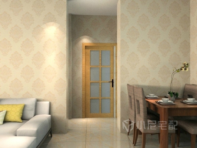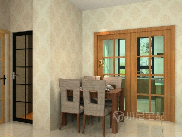 餐桌顏色和廚房門色彩相呼應(yīng)。