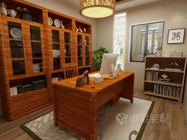 主人需要工作的時候來到書房,看書,寫字,需要計算機(jī),都有,這個小尼宅配書房套裝體現(xiàn)出一種博大精深
