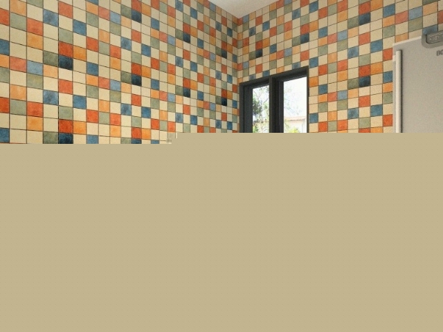 顏色豐富的墻磚和白色的櫥柜搭配,充滿活力。