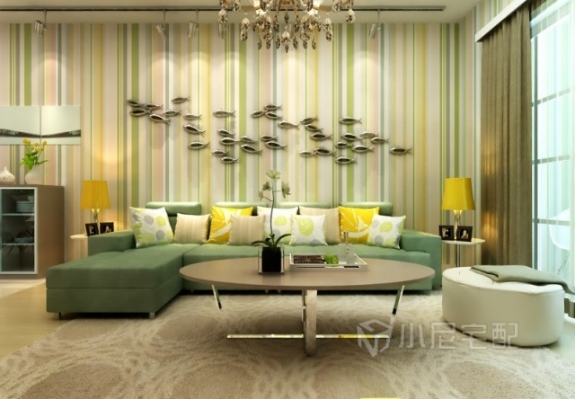 碧水中游過的魚群,是不是很有趣的沙發(fā)背景墻?