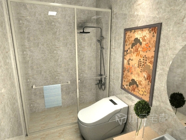 衛(wèi)生間簡潔大氣,采用灰色的墻磚裝飾,彰顯業(yè)主對生活的獨特品味