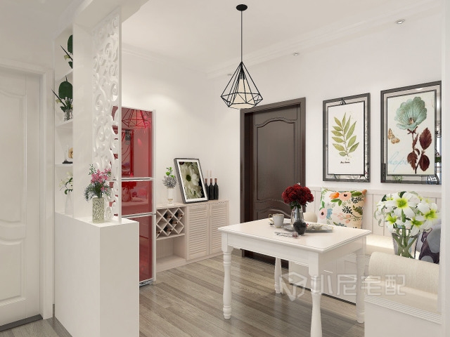 入戶角度,入戶采取鏤空隔斷增加一下業(yè)主的隱私感