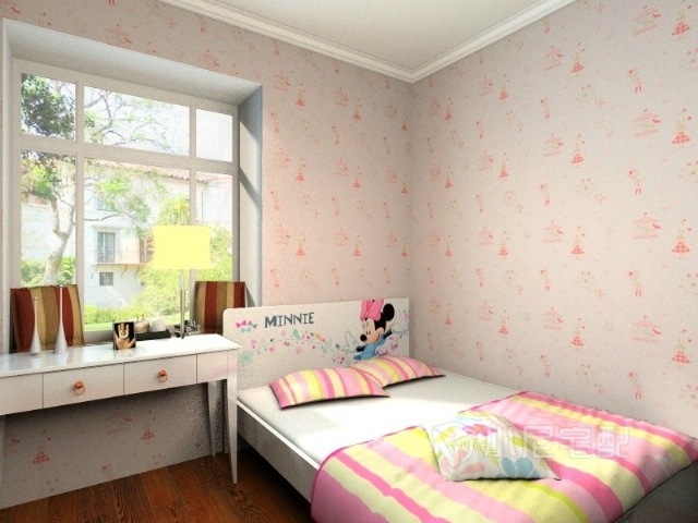 女兒房粉嫩嫩的,加上學(xué)習(xí)區(qū)在飄窗旁,光線充足。