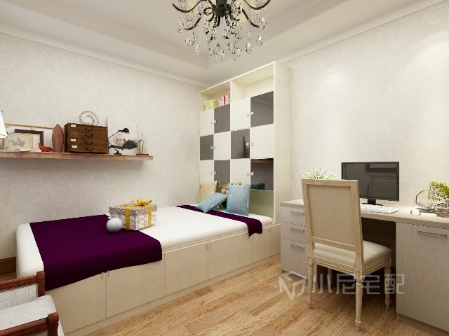 榻榻米加儲(chǔ)物柜加壁架,增加實(shí)用性。
