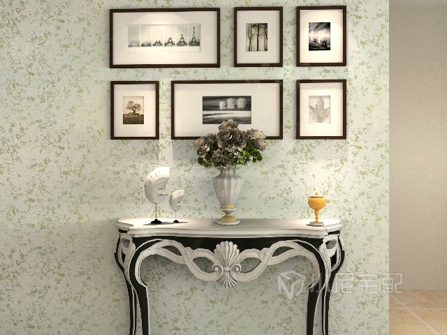彩粒漆背景墻,前面放一個(gè)簡(jiǎn)單的歐式小桌放走廊,不顯得空蕩蕩的。