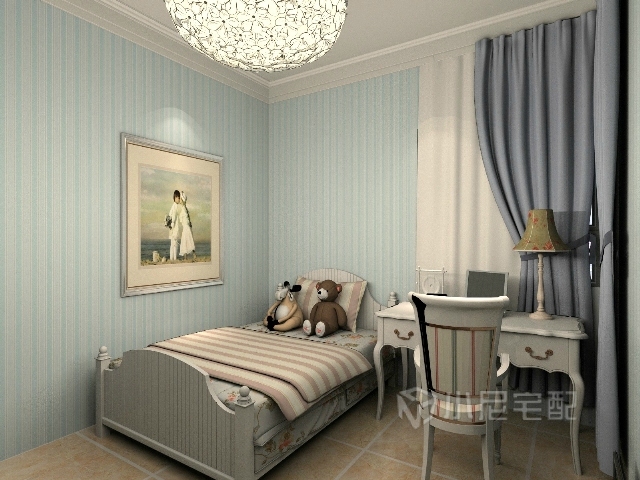 簡(jiǎn)單線條的壁紙,小床加小書桌,簡(jiǎn)約而不簡(jiǎn)單。