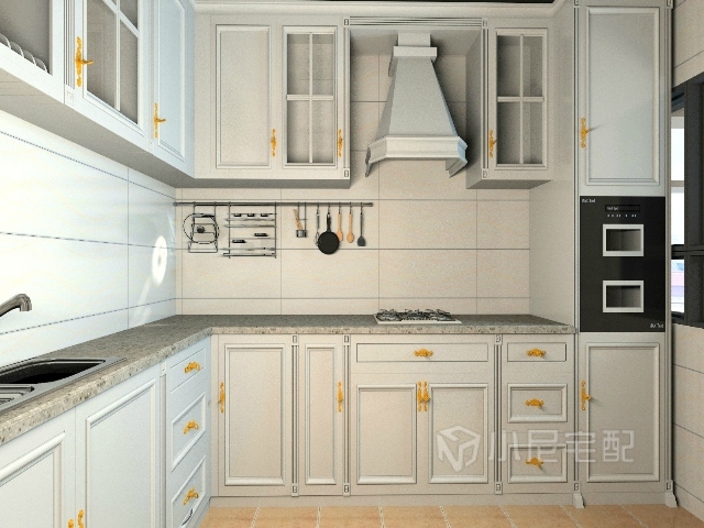廚房的另一個(gè)角度,配上一個(gè)高柜消毒柜。