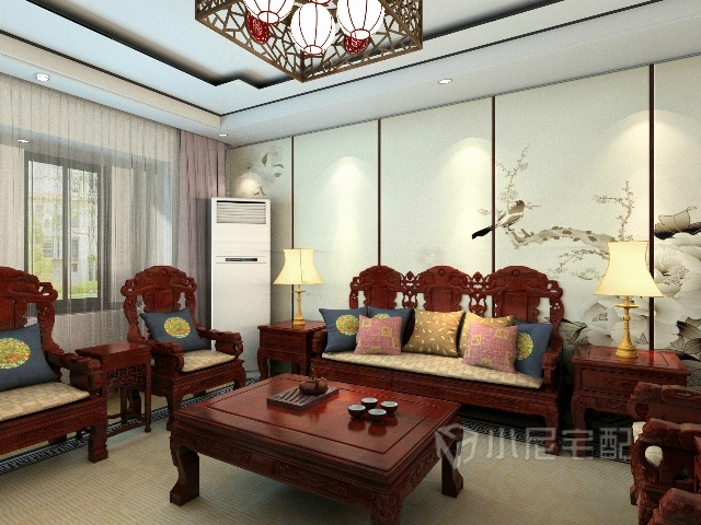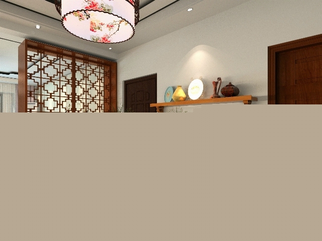 電視墻摒棄傳統(tǒng)的中式花格,簡(jiǎn)單大方