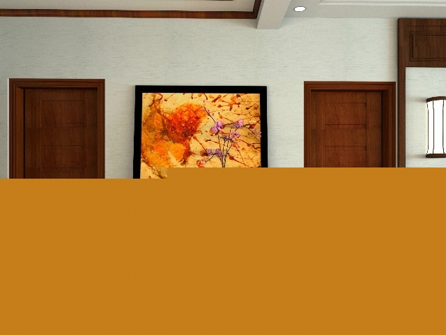 入戶(hù)門(mén)對(duì)著的墻放了一個(gè)角柜,上面一幅畫(huà),很有感覺(jué)