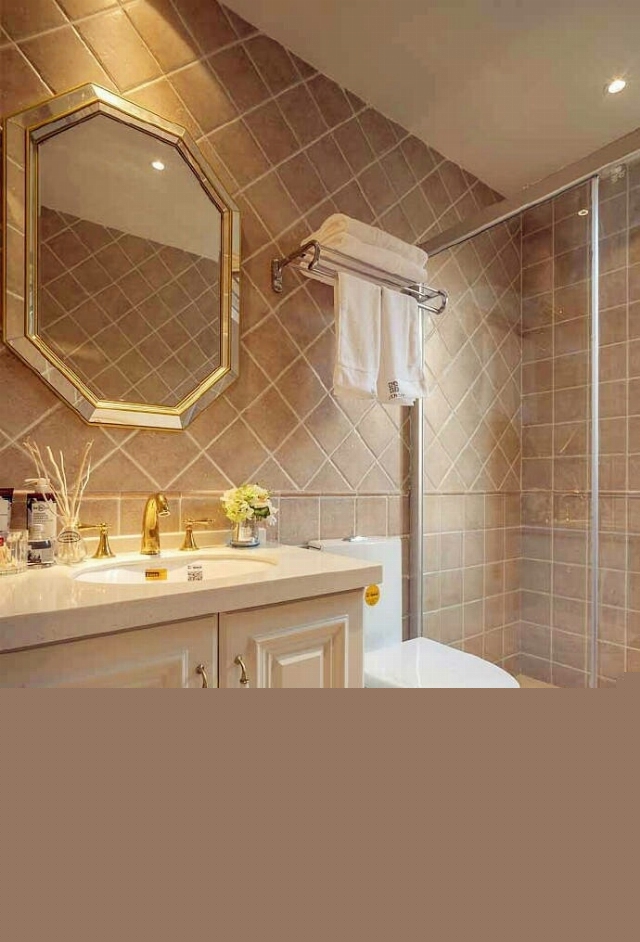 簡歐式的設(shè)計風格加上暖色系的燈光,視覺上富麗堂皇