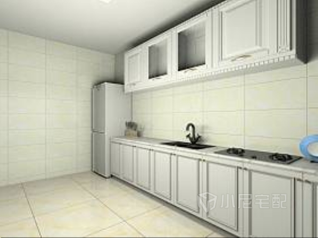 廚房選用簡(jiǎn)歐式的,主色暖白色,整潔的廚房會(huì)讓人有食欲