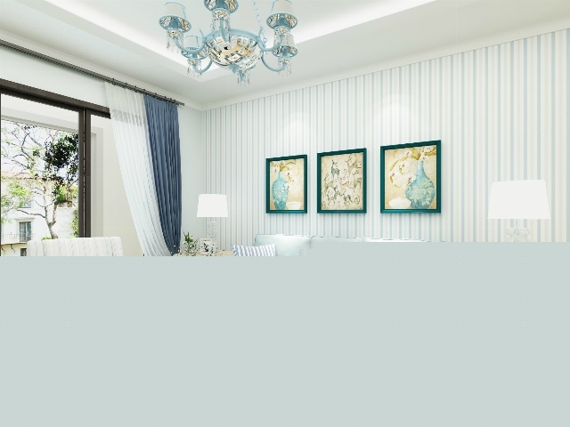 藍(lán)白條紋的壁紙與毛絨絨的條形地毯恰如波浪式的海面,帶給人們靜謐的情懷。