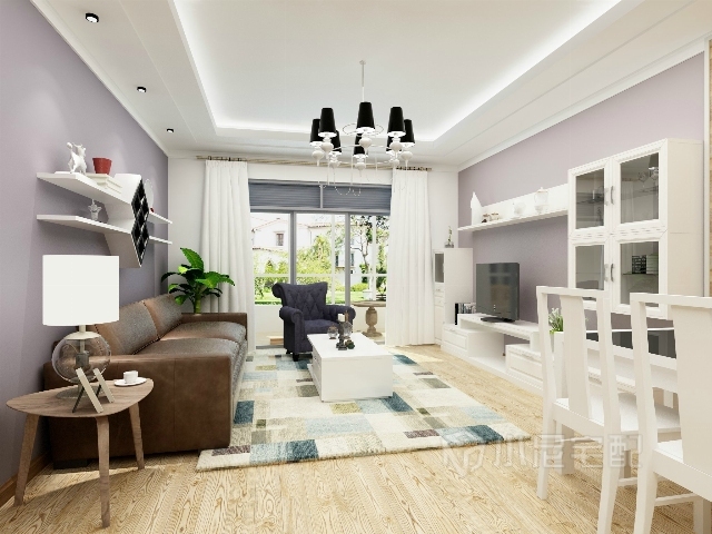 淺紫色的壁紙淡雅恬靜,白色的家具和窗簾提亮整個(gè)空間。