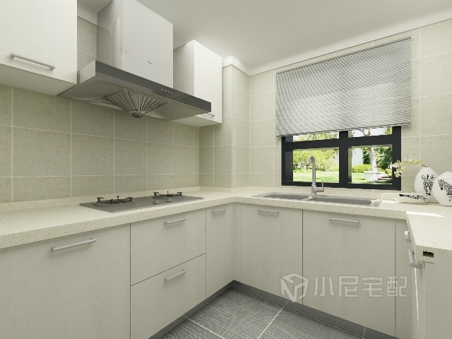白色的整體櫥柜,顯得空間整潔寬敞。
