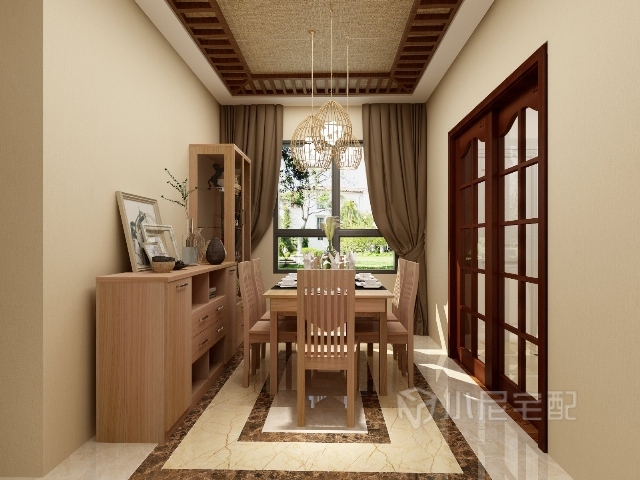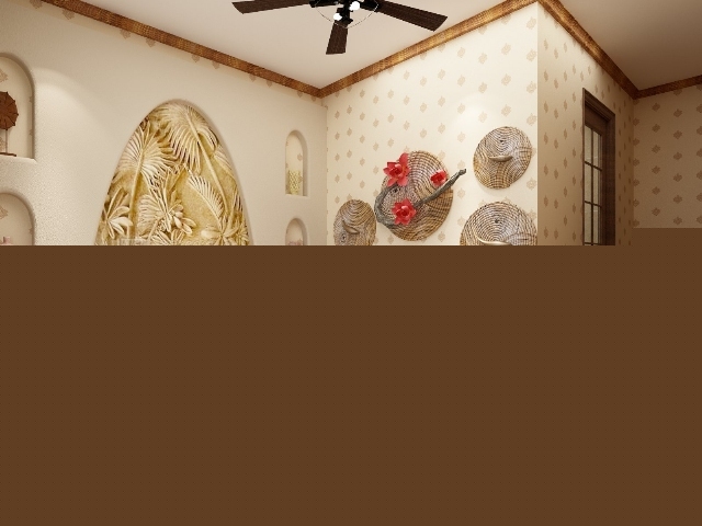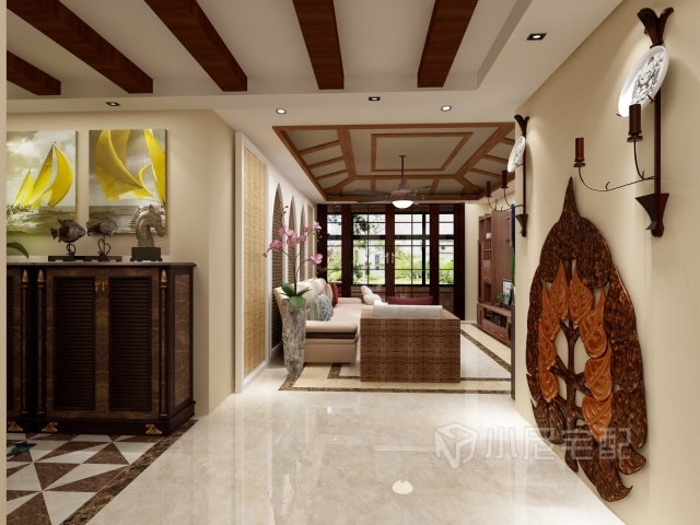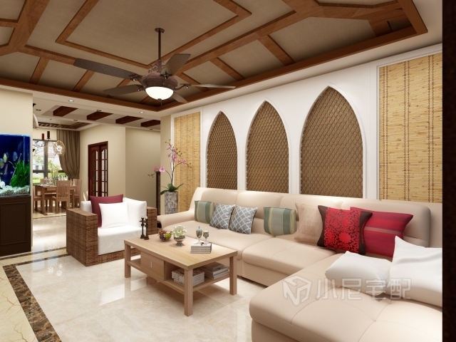 客廳的背景墻和吊頂,是非常經(jīng)典的東南亞特色裝飾