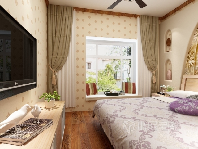 臥室的背景墻設(shè)計是它的亮點之一