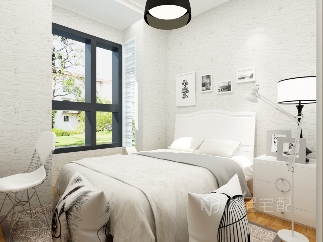 次臥采用了大面積的白色,生活性更多一些